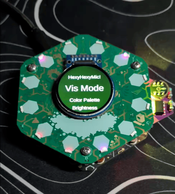 Microphone hexpansion by Lix Prototype: audio sampling with on-device visualisations stored on EEPROM, no app download required.